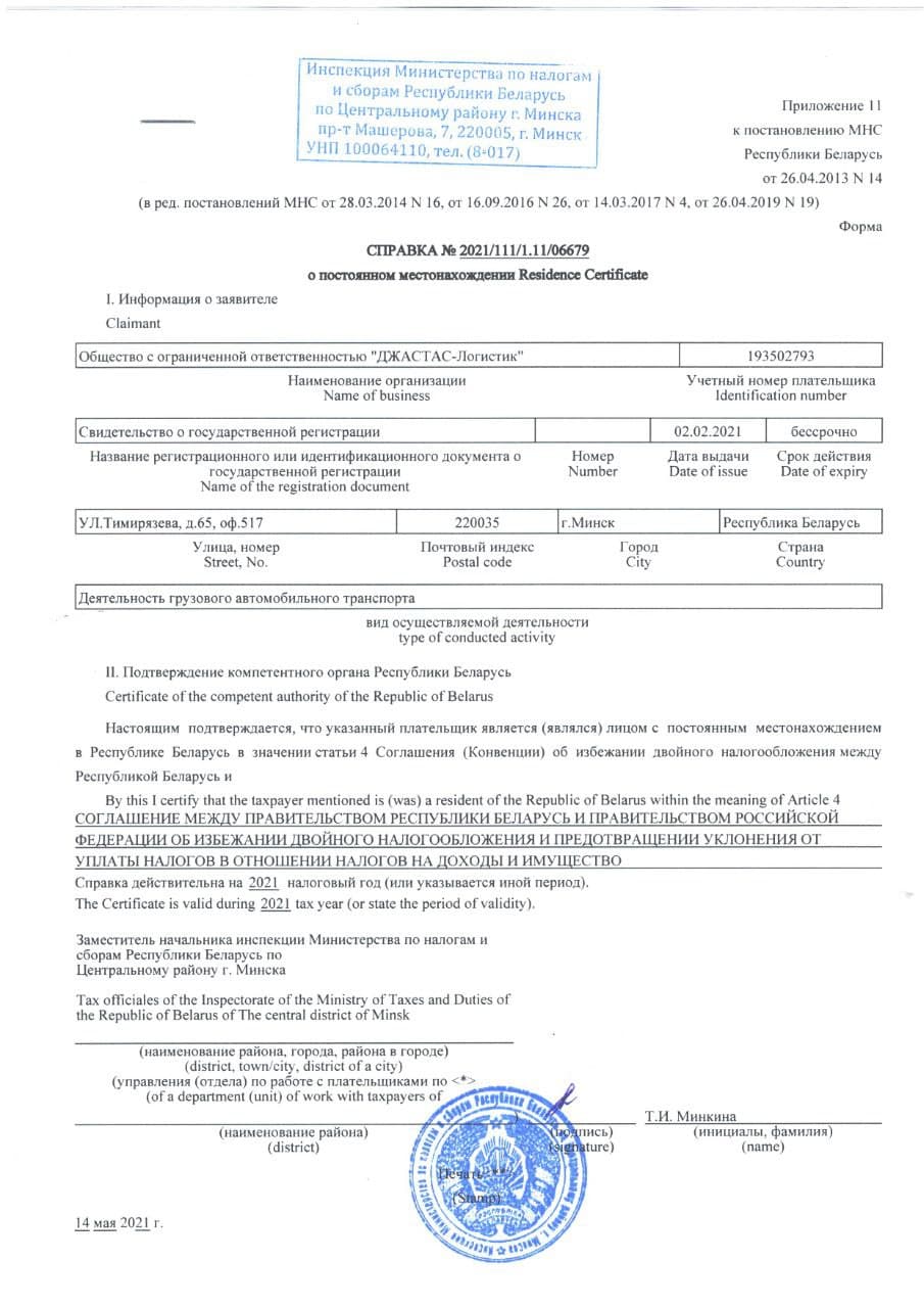 Юридический адрес: 230026, г. Гродно, пр-т Янки Купалы, д. 87, пом. 612, Республика Беларусь.